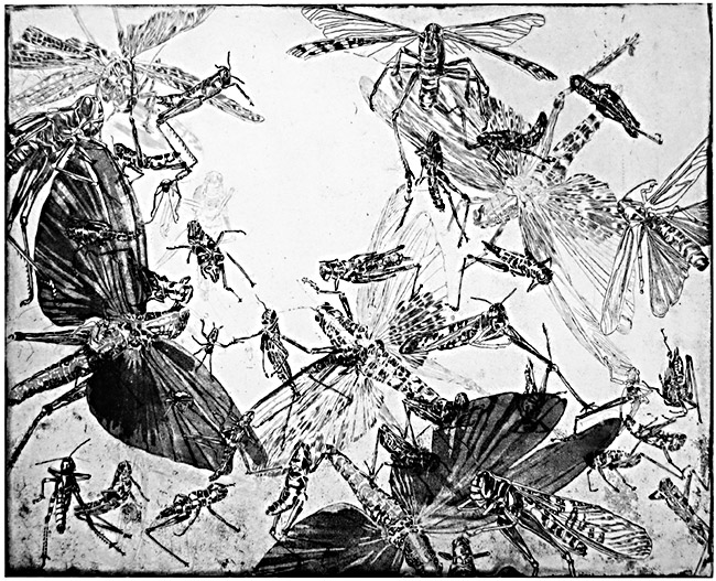 Edition Griffelkunst Hamburg 2010, Heuschrecken, 40x50cm, Vernis Moux, Kaltnadel, Aquatinta, Strichätzung
